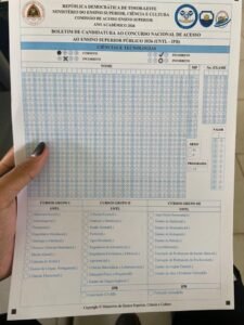 Estudantes ESG. Lere Anan Timur Lospalos priense buletin ba asesu Universidade Nasional de Timor Lorosa’e (UNTL) depoiz simu resultadu ijame nasional iha sexta feira ne’e (19/12/2025 ). Estudante ema nain 5 ne’ebé nia valor prienxe ba kriteriu kestiona konaba opsaun ba Departementu Engenharia Civil la eziste iha buletin ne’ebé husi parte UNTL envia ba eskola.
