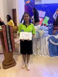Blandina ” Jeni” husi ESG LAT LOSPALOS hetan Premiu primeiru lugar nian wainhira tuir certame nivel nasional